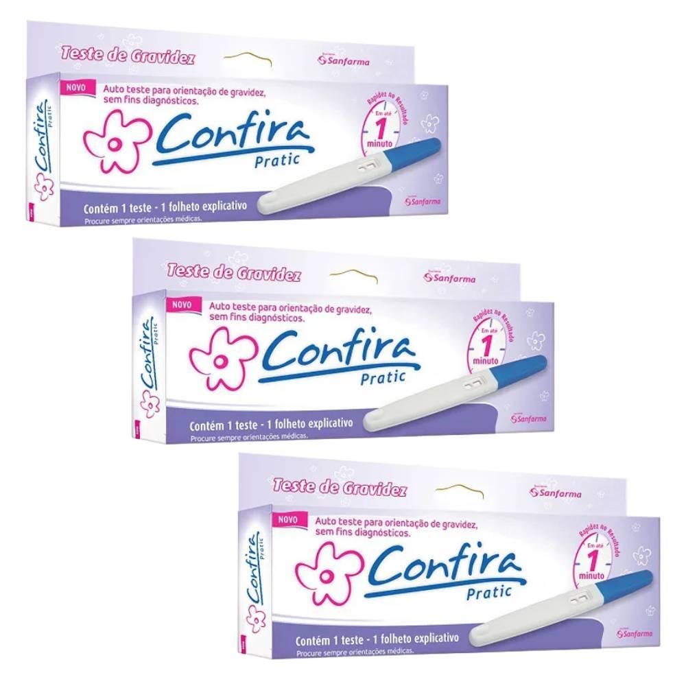 Kit 3 Testes De Gravidez Confira Pratic Tira Reagente - 1 Un Cada Caixa + Instrução de Uso