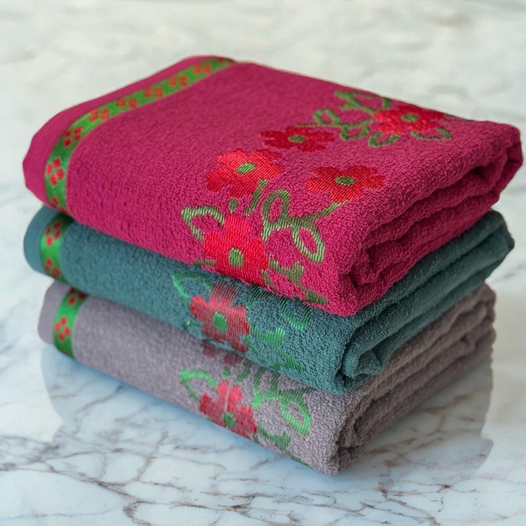 Kit 3 Toalhas de Banho Florata Jacquard Luxo 100% Algodão 140x75cm – Cores Sortidas