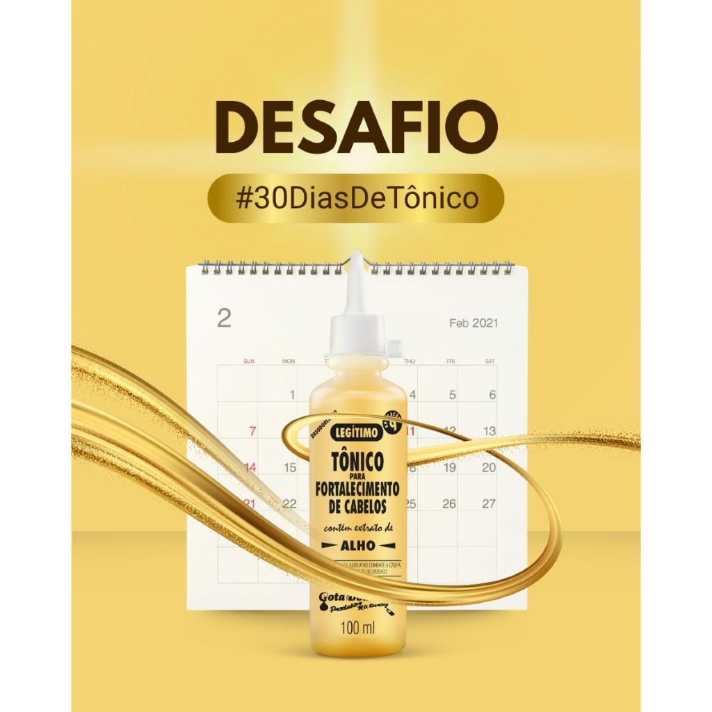 Tônico Fortalecimento Tradicional Gota Dourada 100 ml: Diga Adeus à Queda e Olá aos Fios Fortes! Cansado de ver seus cabelos caírem e sem vida? O Tônico Fortalecimento Tradicional Gota Dourada 100 ml é a solução que você precisa para revitalizar seus fios da raiz às pontas! Este tônico potente foi cuidadosamente formulado com uma combinação exclusiva de ingredientes naturais conhecidos por suas propriedades fortalecedoras e nutritivas: Óleo de Alho e Extrato de Alho: Poderosos aliados contra a queda, eles estimulam a circulação no couro cabeludo, fortalecendo a raiz e promovendo o crescimento saudável. Extrato de Aloe Vera (Babosa): Reconhecida por suas propriedades hidratantes e calmantes, a aloe vera cuida do couro cabeludo, deixando-o saudável para que seus cabelos cresçam fortes. Calêndula: Um toque final para a vitalidade dos seus cabelos, contribuindo para um couro cabeludo equilibrado e fios mais resistentes. Agindo diretamente no couro cabeludo, o Tônico Gota Dourada entrega todos esses benefícios onde mais importa, proporcionando não apenas um alívio da queda, mas também uma explosão de vitalidade e força para seus cabelos. Prepare-se para sentir a diferença: fios mais densos, resistentes e cheios de brilho! Este kit contém: 03 unidades do Tônico Fortalecimento Tradicional Gota Dourada 100 ml