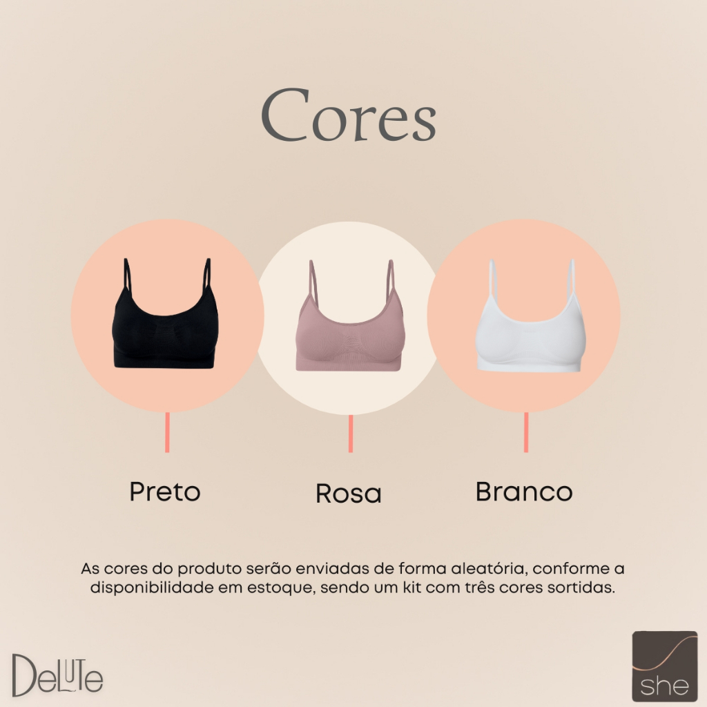 Kit Com 3 Tops Fitness Nadador Sem Costura Sem Bojo Microfibra Ref. 752.04 - She lingerie Top Nadador Microfibra Sem Costura, ideal para roupas diferentes. Produzida em tecido microfibra, o top nadador possui modelagem anatômica que proporciona o máximo de conforto para todas as mulheres. Com 3 opções de cores, o modelo é ideal para o dia a dia. Caracteristicas: - Modelagem anatômica - Secagem rápida - Modelagem regata sem costura - Não marca sob a roupa - Confeccionado em microfibra - Máximo conforto e durabilidade -Modelo Sem Bojo. Composição: - 89% Poliamida - 11% Elastano. Cores: - Rosa - Branco - Preto Tamanhos: - P - 36 a 38 - M - 40 a 42 - G - 44 a 46