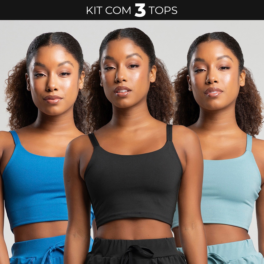 Kit 3 tops cropped de academia com alcinha fitness