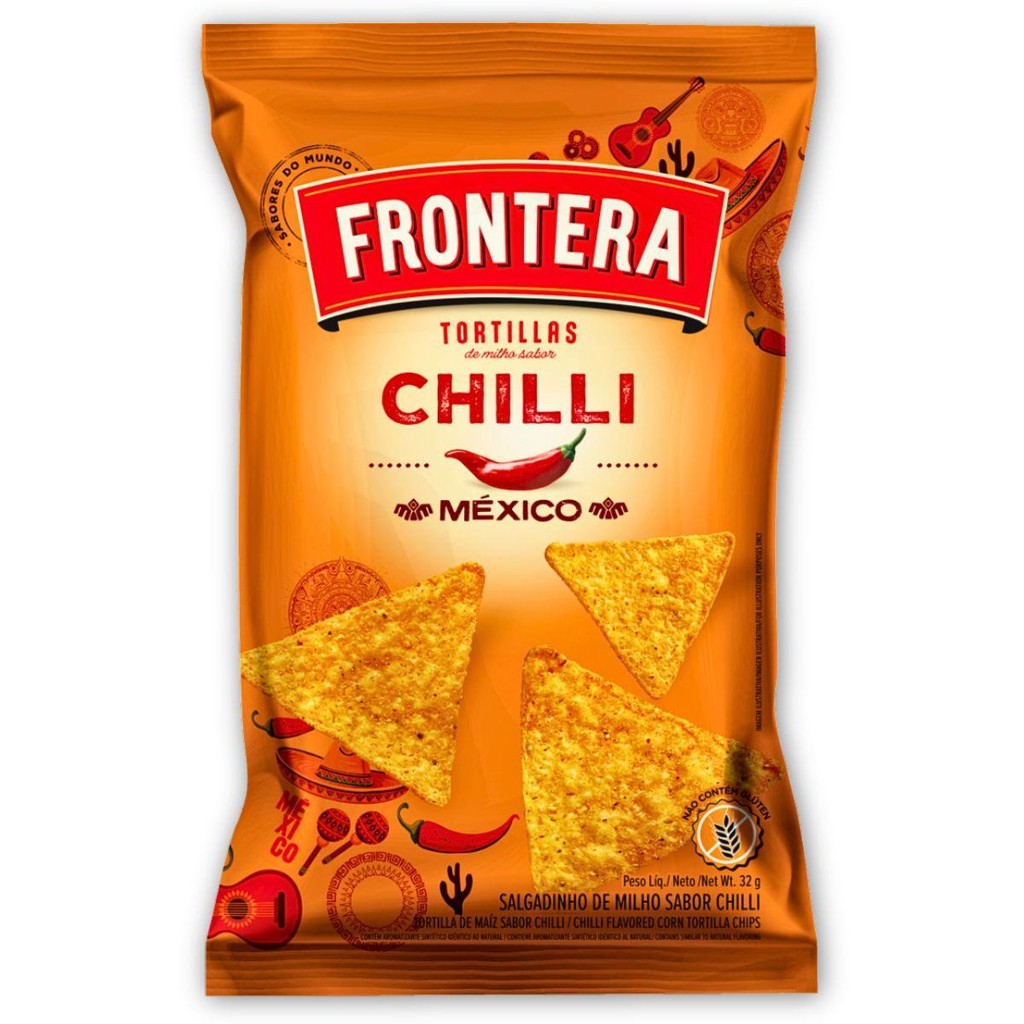 Kit com 3 sabores de salgadinhos Frontera: Salgadinho Tortilha de Milho Picante Forte Sriracha Frontera Tailândia Pacote Salgadinho Tortilha de Milho Queijo Nacho Frontera México Pacote 32g Salgadinho Tortilha de Milho Chilli Frontera México Pacote 32g Ingredientes: Farinha de milho flocada, óleo vegetal e aromatizante. (Para o sabor de queijo, é adicionado condimento preparado sabor queijo e corante extrato de páprica)