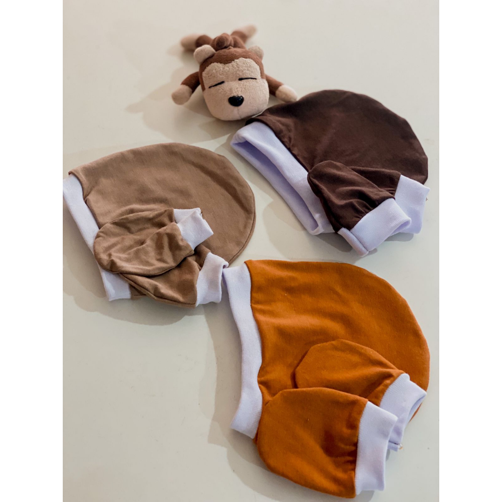 Kit 3 Touca + 3 luva de bebê luvinha bebê 100% algodão.