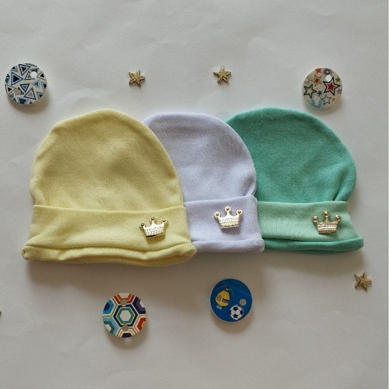 kit 3 touca ou a unidade recém nascido tecido antialérgico com detalhe de coroa