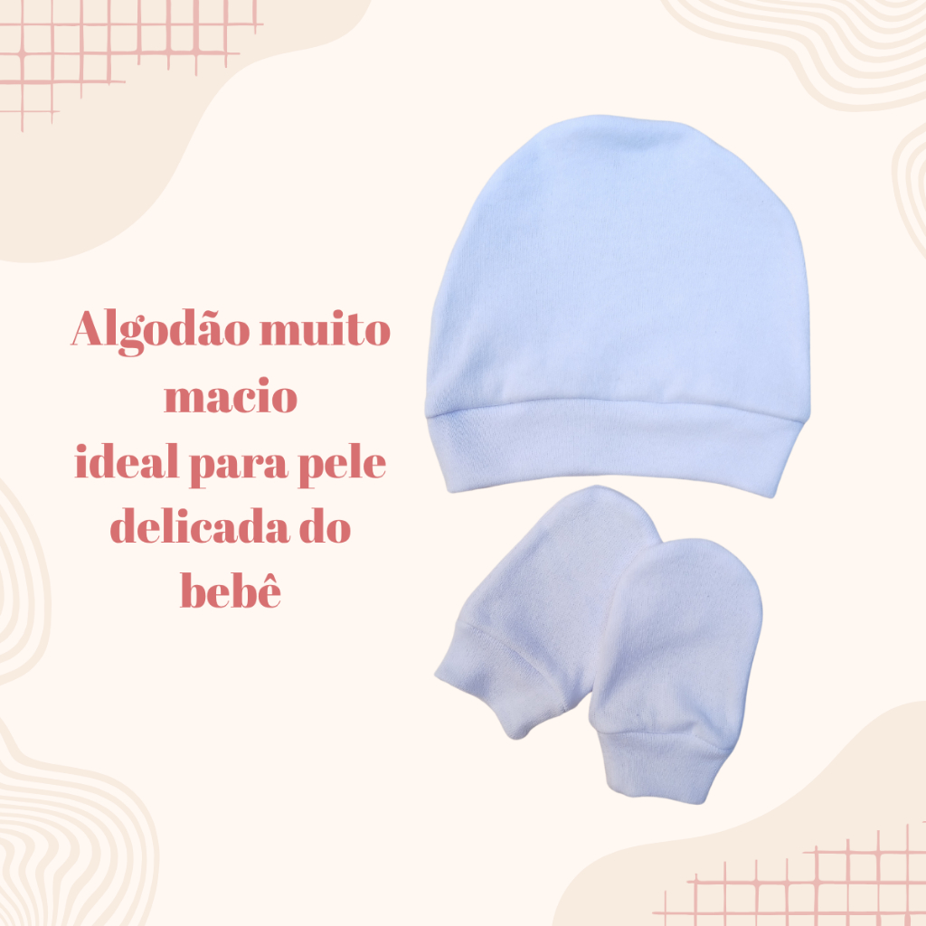 Kit 3 toucas e luvas recém nascido, antialérgico, algodão, enxoval, minimalista, menino, menina, maternidade, RN