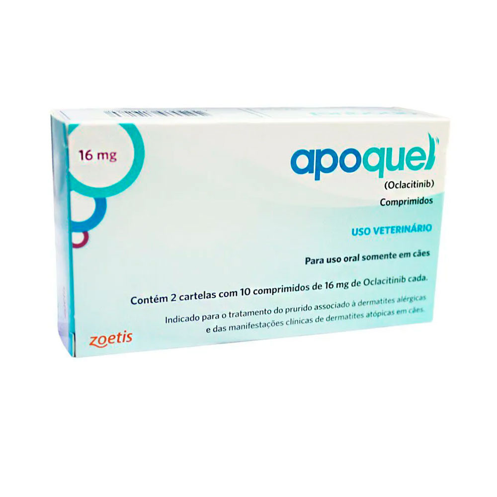 – Indicado para cães adultos;– Alívio total da coceira em 24 horas;– Age diretamente no foco da coceira, minimizando os efeitos colaterais;– Pode ser usado em tratamentos de curto e longo prazo,– Disponível em comprimidos de 16 mg. Todo cão tem o costume de se coçar ocasionalmente. Porém, quando a pele começa a ficar machucada, é sinal de que há algum problema. Alergias e infecções podem causar a coceira, especialmente em animais com mais sensibilidade. Para ajudar seu amigo canino que está nessa situação, você pode contar com Apoquel! Irritações dermatológicas podem ter várias origens, mas a coceira é um sintoma habitual. Portanto, os tutores precisam ficar atentos e buscar tratamentos efetivos. O Apoquel para cachorro é um medicamento que pode ser utilizado a curto e a longo prazo.