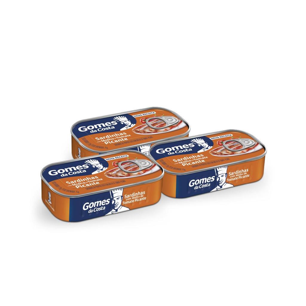 Kit 3 UN - Sardinhas ao Próprio Suco com Molho de Tomate Picante - 125g - Gomes da Costa