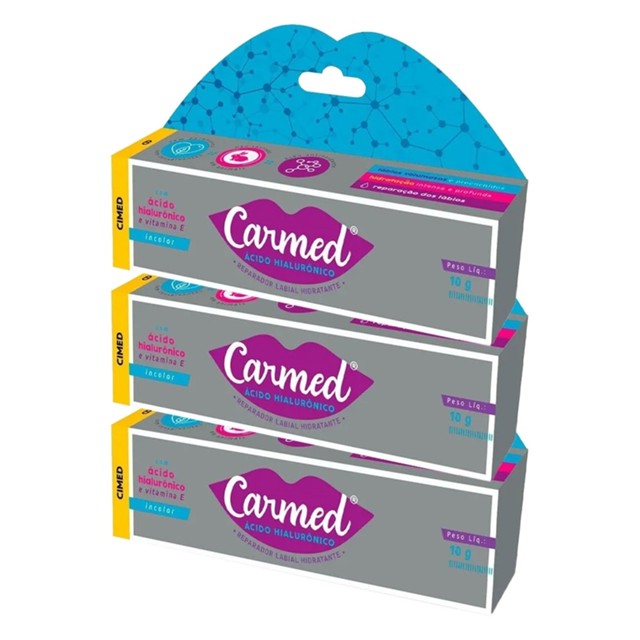 Kit 3 und Carmed Hidratante Labial Ácido Hialurônico 10g O Reparador Labial Hidratante Carmed é apresentado em gel com 10g, contendo ácido hialurônico para hidratação intensiva e regeneração dos lábios.