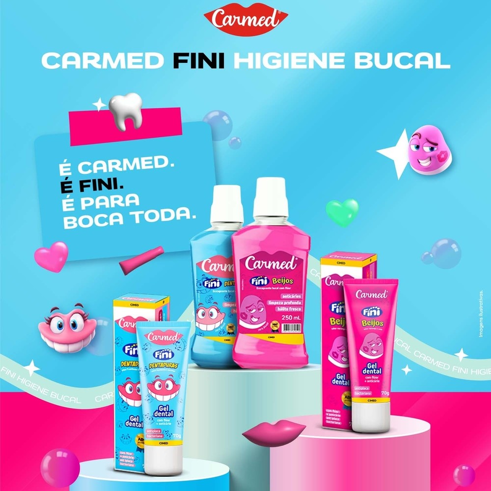 Kit 3 und Enxaguante Bucal Carmed Dentadura 250ml O Enxaguante Bucal Fini Dentadura chegou para transformar sua rotina de cuidados com a saúde bucal, oferecendo frescor prolongado e um sabor inconfundível. O Enxaguante Bucal Carmed Fini é uma solução inovadora que une o cuidado com a higiene bucal a uma experiência divertida e saborosa. Inspirado nos famosos docinhos da marca Fini, esse enxaguante oferece uma explosão de sabor que torna o cuidado diário ainda mais agradável.