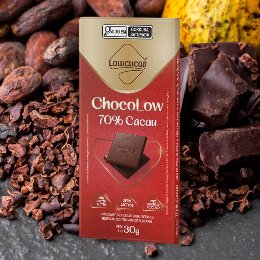 Kit 3 Unid. de Chocolate Chocolow 70% Cacau Zero Lactose 30G - Marca Lowçucar