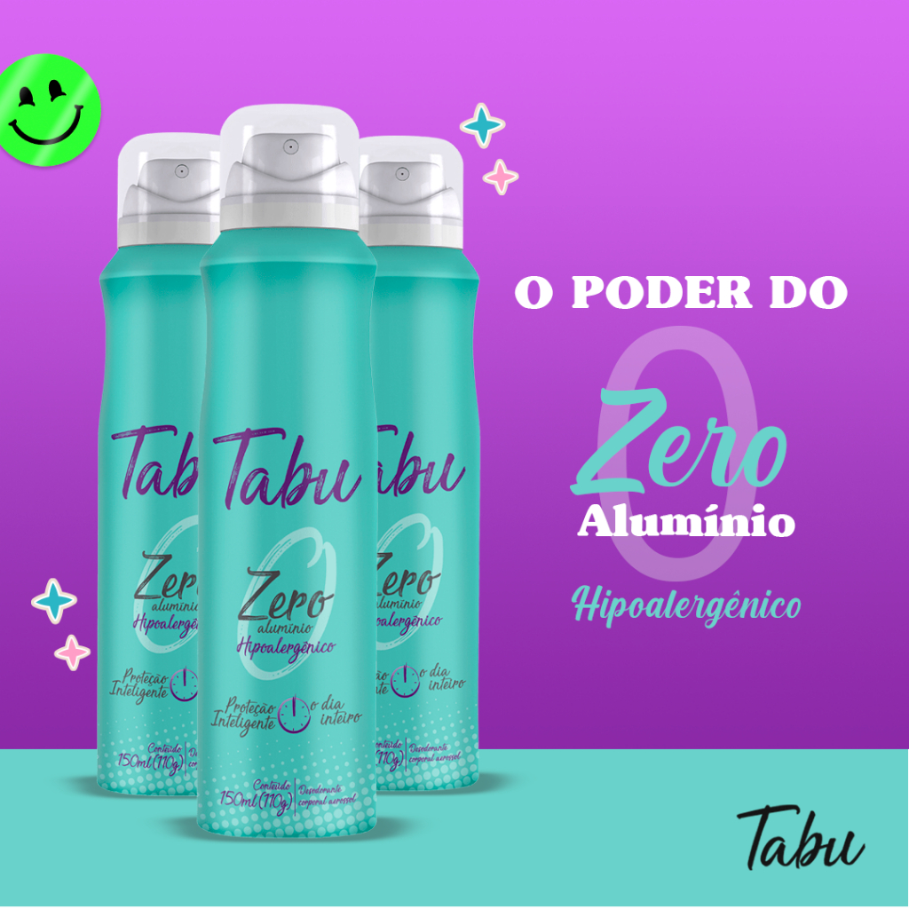 Kit 3 unid - Desodorante Aerosol Tabu Zero Alumínio 150Ml