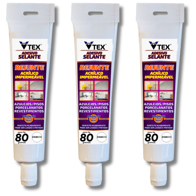 KIT 3 UNID. Melhor REJUNTE pronto uso p/ revestimentos em geral fácil, s/cheiro BRANCO 80GR VTEX