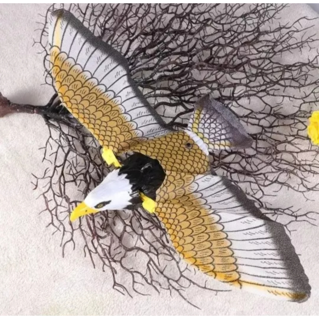 Kit com 3 unidades Gavião Águia eletronica!!! Utilizado como brinquedo para crianças e pets/gatos e também como espantalho/espanta pássaros!!! Movido a 2 pilhas modelo AA NÃO inclusas, o produto bate asas e emite som característico da ave de rapina!!! Acompanha cordinha de nylon para pendurá-lo!!! Mede 25x42cm aprox. Com as asas abertas!!! Preço promocional aproveite!!!