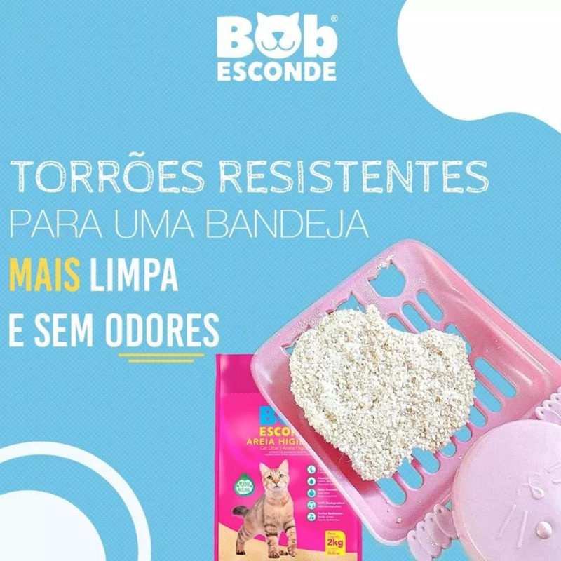 Kit 3 Unidades Areia Higiênica para Gatos Bob Esconde com Extrato de Mandioca Biodegradável 2Kg