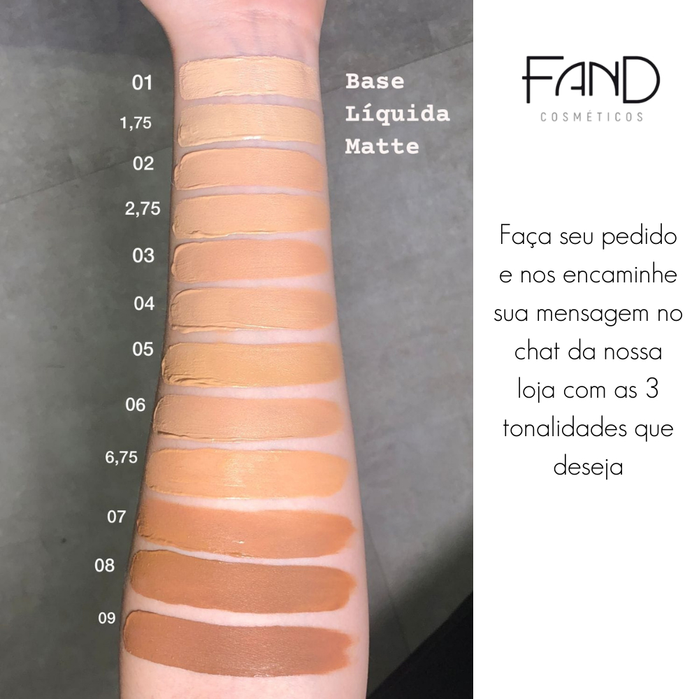 Kit 3 Unidades Base Líquida Fand Cosméticos 30ML Acabamento Matte Alta Cobertura