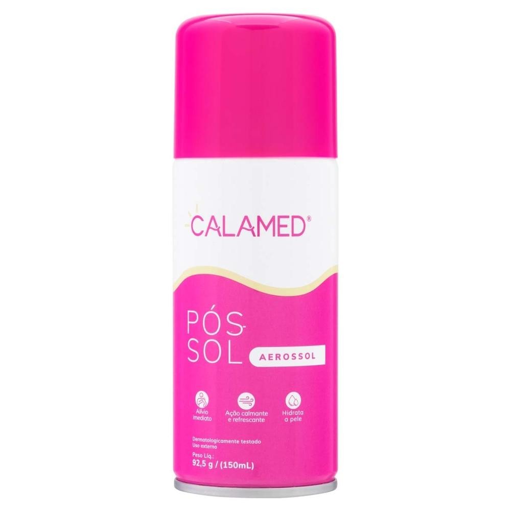 Kit 3 Unidades Calamed Aerossol 150 ml O Calamed Aerosol é um pós-sol que promove o alívio imediato de dores e desconfortos causados por queimaduras solares. A aplicação pode ser feita tanto no rosto quanto no corpo. Recomendado para crianças a partir de 3 anos de idade. Modo de Uso: Mantenha a uma distância de 15cm do local de aplicação. Lavar a pele com água e sabão. Secar bem antes de cada aplicação. Aplicar na região afetada 3 ou 4 vezes ao dia. Em seguida, massagear a área até que o produto penetre completamente. Aguarde o produto secar bem antes de colocar a roupa. Composição: Propylene glycol, talc (zinc oxide, CI 77491, CI 77492)*, Alcohol, stearalkonium bentonite, camphor, phenoxyethanol, parfum, cinnamyl alcohol, citronellol, hydroxycitronellal, linalool, coumarin, eugenol, isoeugenol, propane, butane, isobutane. Calamina rosada.