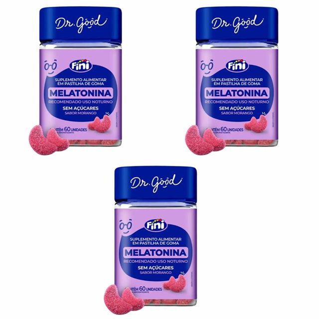 Kit 3 Unidades Dr Good Fini Melatonina 60 Goma Sabor Morango