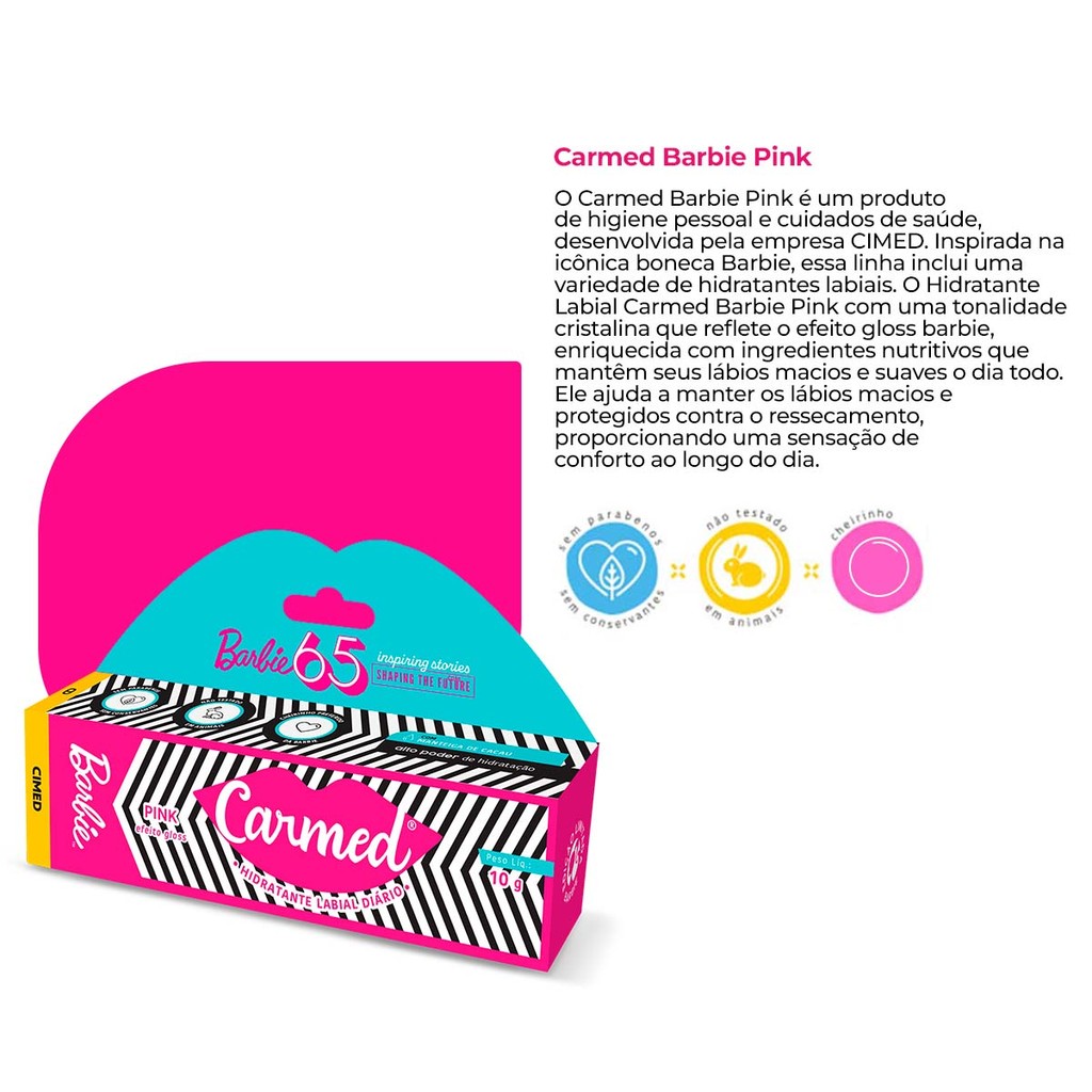 Kit 3 Unidades Hidratante Labial Carmed Barbie Barbie Pink Efeito Gloss10g