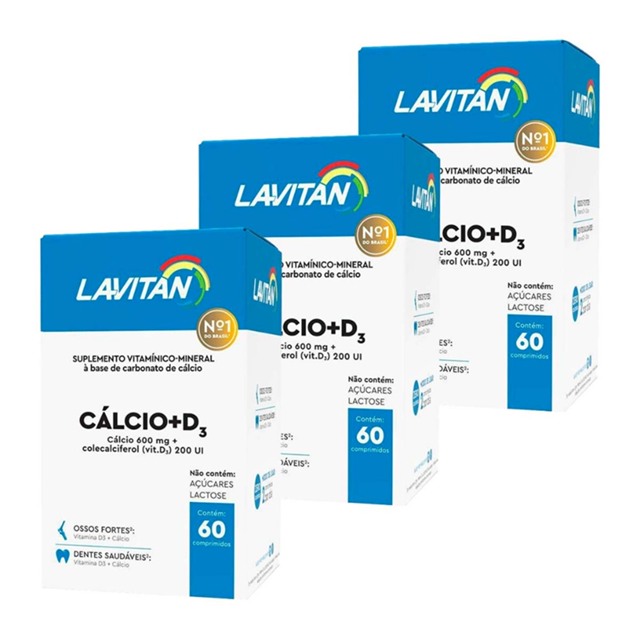 Kit 3 Unidades Lavitan Cálcio + Vitamina D 600mg 60 Comprimidos
