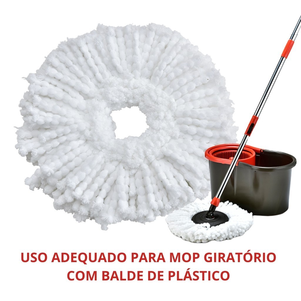 Kit 3 Unidades Refil Mop Giratório Universal Microfibra 360 Refil Para Mop Cesto Plástico