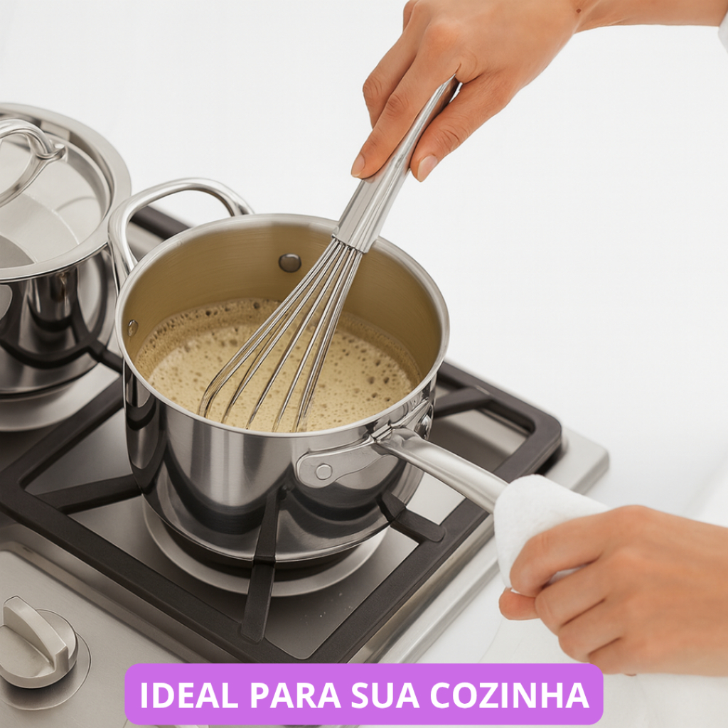 Kit 3 Utensílios de Cozinha – Fouet, Amassador de Batata e Amassador de Alho Premium
