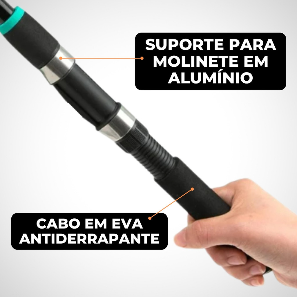 Kit 3 Varas Pesca 1,70m Barata Fibra de Vidro Para Molinete Telescópica Resistente Pescaria