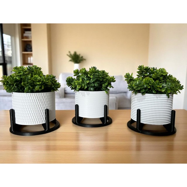 Kit 3 Vasos Decorativos Com Suporte e Plantas Artificiais Para Decorar Sala Escritório Cozinha Banheiro Nichos Estantes
