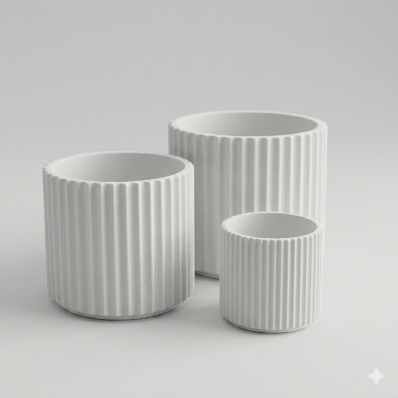 Kit 3 Vasos Decorativos Ondulados em PLA Impressão 3D Minimalista 3 Tamanhos Cachepô Moderno