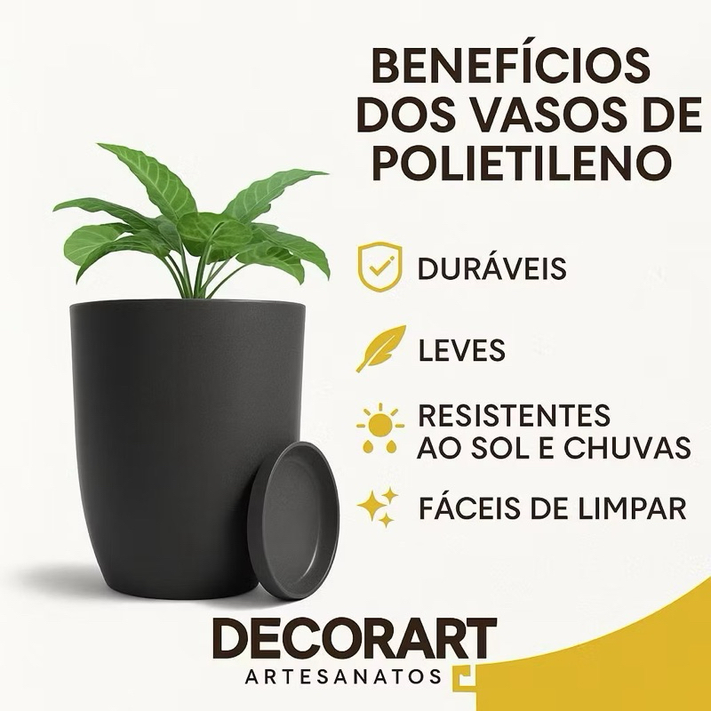 Kit 3 Vasos Decorativos Planta ou Flor Polietileno Coluna Lisa N1 N2 + Bojo N1 Com Pratos + BRINDE