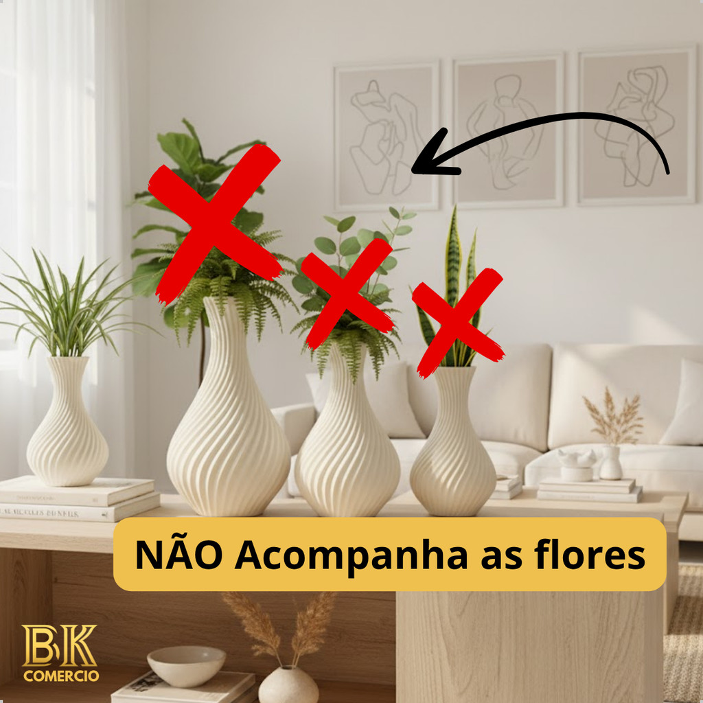 ELEGÂNCIA E DESIGN QUE TRANSFORMAM SEU AMBIENTE Decore com personalidade e bom gosto. O Kit com 3 Vasos Decorativos em Espiral foi criado para quem busca mais do que beleza: ele entrega estilo, sofisticação e um toque moderno que se encaixa em qualquer ambiente — da sala ao escritório. Você não precisa gastar muito ou contratar um decorador para deixar seu espaço com cara de revista. Este trio com design espiral 3D cria uma composição harmoniosa que eleva instantaneamente o visual do seu lar. ✔ ESPECIFICAÇÕES DOS VASOS: Vaso Pequeno: 7 cm (largura) x 11 cm (altura) Vaso Médio: 10 cm (largura) x 15 cm (altura) Vaso Grande: 12 cm (largura) x 18 cm (altura) Material: Plástico resistente de alta qualidade (ABS ou similar) Cor: Branco fosco Peso leve e fácil de manusear ATENÇÃO: Este kit NÃO acompanha plantas. As imagens são ilustrativas para inspiração decorativa. ✅ DESTAQUES DO PRODUTO: Design espiral com textura 3D exclusiva Combina com ambientes modernos, minimalistas ou escandinavos Ideal para decorar salas, estantes, varandas, escritórios e mais Produto leve, durável e de alta qualidade Pode ser usado com flores secas ou plantas artificiais 🛋 PARA QUEM É ESSE KIT? ✔ Para quem quer renovar a decoração de forma simples e impactante ✔ Para quem ama design moderno e minimalista ✔ Para quem valoriza bom gosto sem abrir mão da praticidade ✔ Para quem busca um presente criativo e elegante ❓ PERGUNTAS FREQUENTES (FAQ) 1. Vem com as plantas das fotos? Não. Este kit inclui apenas os vasos decorativos. As plantas são ilustrativas para mostrar ideias de uso. 2. Posso usar com planta natural? Sim, desde que seja uma planta leve e você coloque um recipiente interno com água. Os vasos não têm furo de drenagem. 3. O material é frágil? Não. É feito com plástico resistente de alta qualidade, ideal para uso interno. 4. As cores são iguais às das fotos? Sim,. Pode haver leve variação conforme o brilho da tela. 5. Eles vêm encaixados ou separados? São enviados separadamente, bem protegidos para evitar danos no transporte.