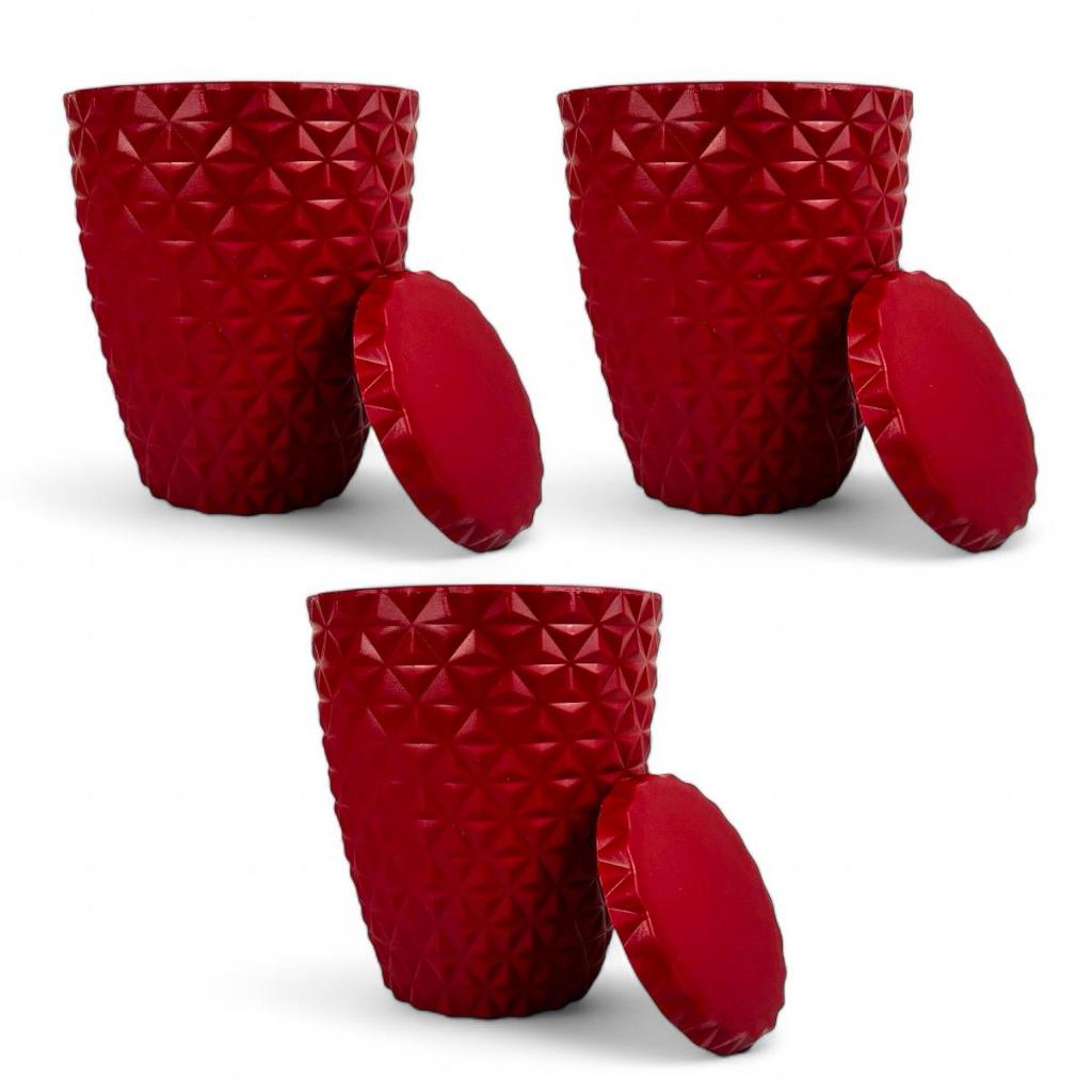 Kit 3 Vasos Polietileno Decorativos Flor Plantas Natural Cone Redondo Diamante 3D com Pratos (20x23)