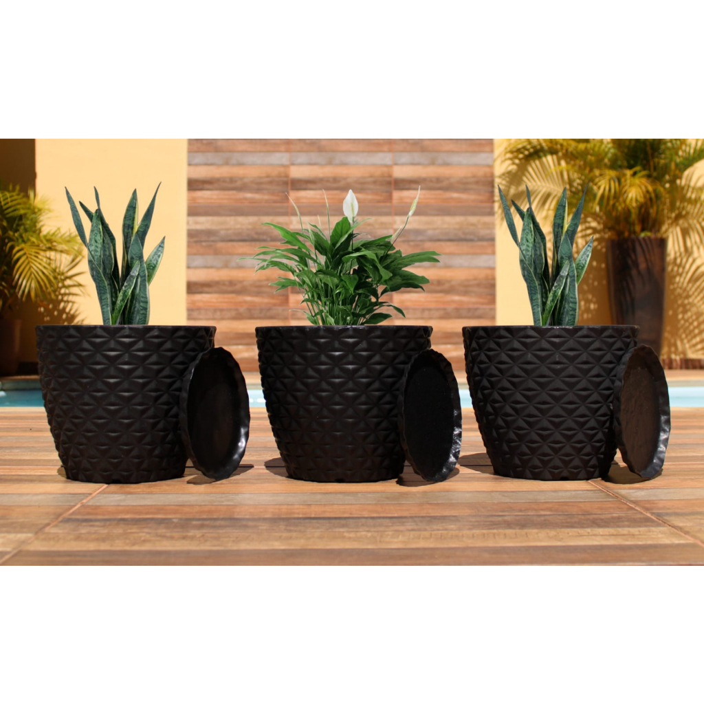 Kit 3 Vasos Polietileno Para Plantas Decorativo Bojo Diamante N1 (24x20) Com Prato