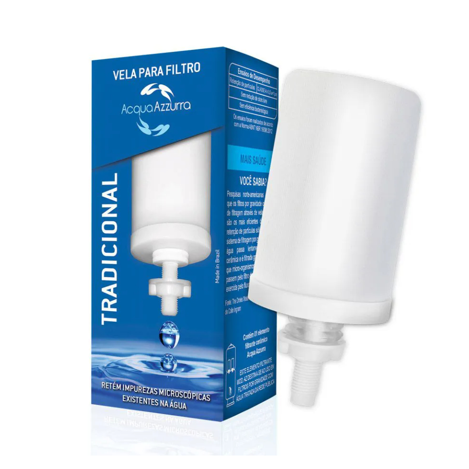 Produzida conforme normas técnicas do INMETRO (ABNT NBR 16098:2012), apresenta alto desempenho na filtragem de água em filtros por gravidade. Este sistema da filtragem por gravidade através do elemento filtrante (vela), composto por material cerâmico microporoso, retém partículas sólidas e impurezas microscópicas, no qual a água passa lentamente pela vela, sendo filtrada gota a gota devido à baixa pressão exercida pelo fluxo de água, proporcionando água hígida e cristalina. Este elemento filtrante é compatível ao uso em todos os filtros por gravidade.