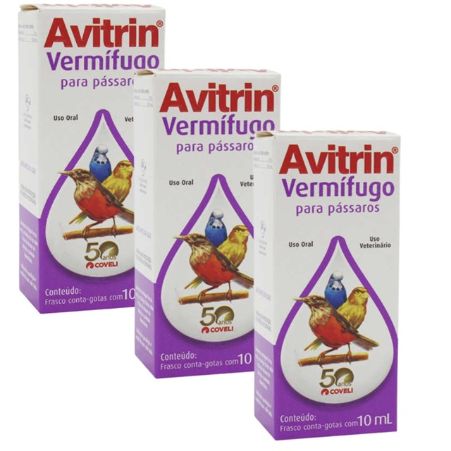 | Kit 3 Vermifugo Coveli Avitrin para Pássaros - 10 mL este produto | R$ 46,33 | 30% | 5.0/5 | 5 |
