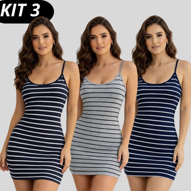 | kit 3 vestido moda feminina Vestido de Alcinha Listrado moda verão ... este produto | R$ 59,40 | 34% | 5.0/5 | — |
