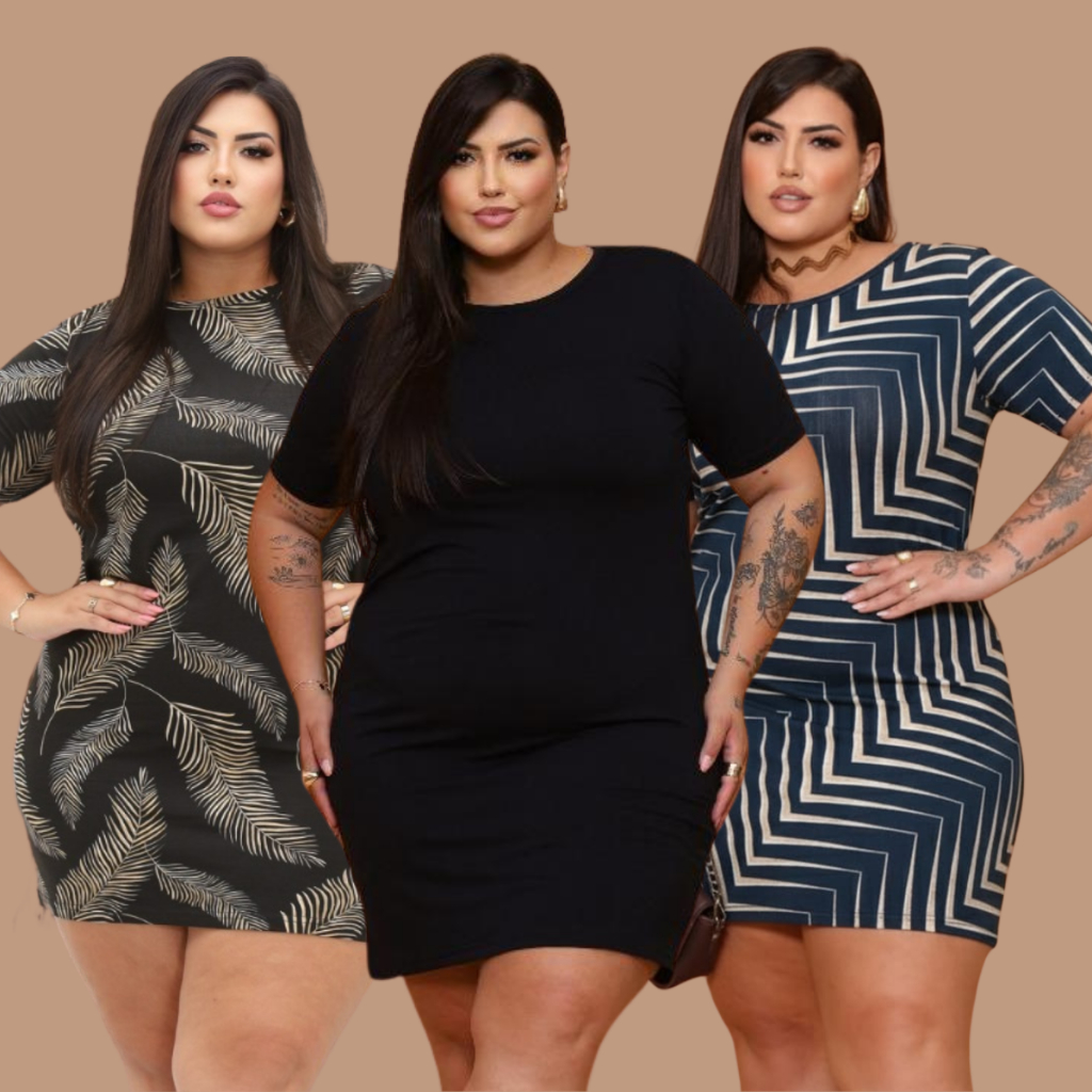 KIT 3 Vestidos Feminino Curto Camisão Verão Plus Size Curve Curvy Moda Feminina Elegante Festa