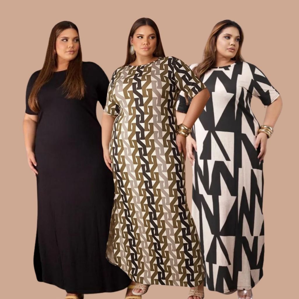 Kit 3 Vestidos Longos Plus Size Curve Festa Evangélico Social veste do 42 ao 58 Verão Feminino Sise