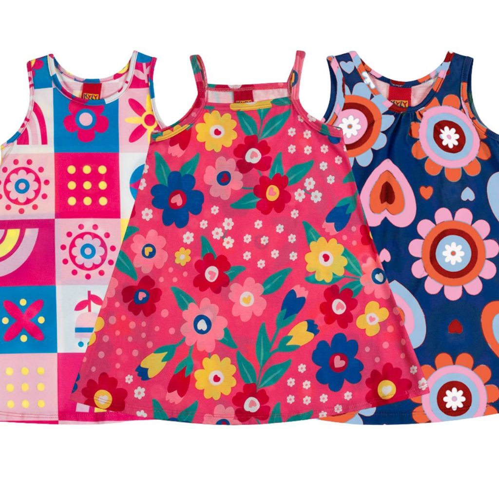 Kit 3 Vestidos Verão Infantil Malha Menina Regata Alcinha Estampado Confortavel Moderno Kyly 6
