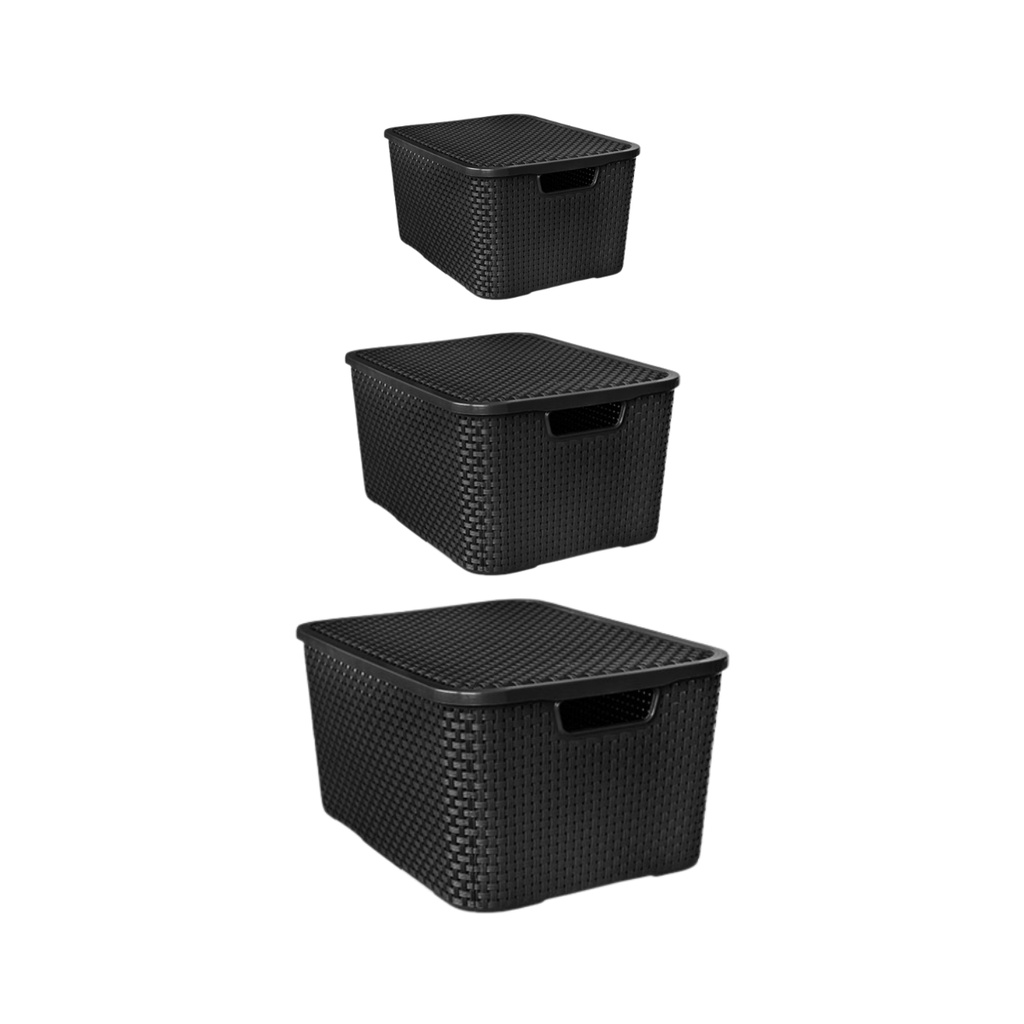kit 3 X Caixas Organizadora Rattan 7 13 18 Litros Cesto Organizador Multiuso Plástico Empilhável Com Tampa Decoração