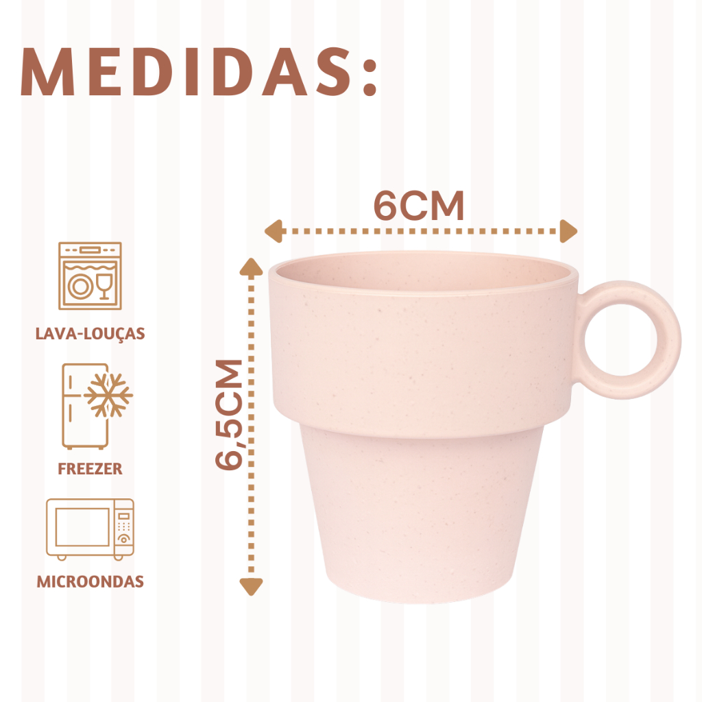 Kit 3 Xícara de Café Expresso Bambu 120ml Sortida Empilhável Sustentável Eco Microondas Freezer Geladeira