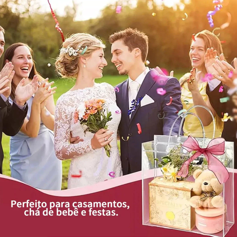 Sacola Transparente com Botão de Fecho Composição Plástico PVC resistente Medidas Aproximadas 15x13x7cm | 16x15x7cm | 20x20x8cm | 20x30x10cm | 25x20x7cm Quantidade por Kit 10 / 20 / 30 unidades (opções disponíveis) Em relação a este projeto Material de alta qualidade: A pequena bolsa de presente transparente com alça é feita de material plástico PVC transparente de alta qualidade, impermeável, reutilizável, não é fácil de quebrar, e durável. Comparado com sacos plásticos comuns ou sacos de compras, eles têm uma maior capacidade de suporte de carga Tamanho adequado: A alça resistente é fácil de transportar e perfeita para armazenar pequenos acessórios, doces, lanches, presentes e outros itens pequenos. Por favor Confira o Tamanho antes de comprar Design prático: Cada bolsa de presente transparente tem um pequeno design de botão que é fácil de fechar e abrir, evitando efetivamente que os itens internos deslizem. As superfícies transparentes e em branco permitem liberar sua criatividade para desenhar e rabiscar, e você pode decorar sua criatividade, e pode decorar sua bolsa de presente transparente amarrando uma fita ao redor da alça Visor de presente Ideal: Nossa bolsa de presente transparente vem com uma alça e possui um design completamente transparente, facilitando a visualização dos itens dentro da bolsa. A bolsa de presente transparente garante que o fundo quadrado da bolsa de presente transparente possa ficar de pé sem suporte. A bolsa de embalagem de presente perfeita permite que você apresente presentes requintados e tentadores, etc. Amplamente aplicável: Estes sacos de presente de festa transparente com alças são perfeitos para comemorações, festas, casamentos, chuveiros de bebê, aniversários, feriados, festivais, chuveiros de noiva, sacos de compras, sacos de presente, Natal, dia dos namorados, artesanato DIY, etc. Aviso Importante Variações ligeiras de cor e dimensão podem ocorrer por iluminação e medição manual — isso não afeta a funcionalidade do produto!