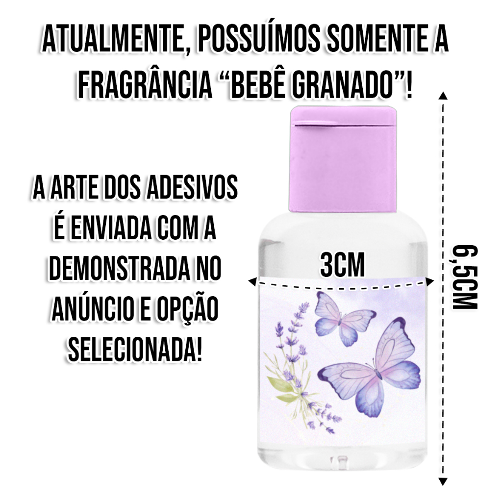 Seja bem vindo à nossa loja! ATENÇÃO A QUANTIDADE DO KIT É ENVIADA DE ACORDO COM O SELECIONADO EM SUA RESPECTIVA OPÇÃO. Selecionando "30 Unidades" enviamos 30 unidades respectivamente! Procurando uma forma especial de agradar seus convidados? Apresentamos a você nossa incrível seleção de lembrancinhas, perfeitas para Mamães e Papais que procuram um bom presente para seus convidados nesses principais momentos da vida de seus filhos. Sabemos que as primeiras memórias são extremamente importantes para as novas famílias e ao escolher nossas lembrancinhas, você estará transmitindo o cuidado e todo o amor e carinho que seus convidados precisam. Nos comprometemos com um envio rápido e seguro para todo o Brasil, visando tentar atender a todas as necessidades que você precisa e no tempo que precisa. ITENS INCLUSOS: - Frascos de 30ml com Sabonete Líquido Transparente (aroma "Bebê Granado") e Tampas Coloridas (de acordo com a opção selecionada); - Etiquetas Adesivas Tema Jardim Encantado (de acordo com a opção selecionada); - Tags Furadas Tema Jardim Encantado (de acordo com a opção selecionada); - Saquinhos Plástico e Fita de Sisal. -------------------------------------------------------------- POR QUE COMPRAR CONOSCO? 1º - Temos preocupação com a integridade do kit: Enviamos todos os itens separadamente no pacote, garantindo a integridade do produto durante a entrega. Dessa forma, assim que o kit estiver em suas mãos, você poderá montá-lo tranquilamente e garantir que seus convidados sejam presenteados com qualidade. 2º - Produto de excelente qualidade: Nosso sabonete é formulado com ação antibacteriana capaz de eliminar até 99,99% das bacterias e germes, fornecendo a proteção que seus convidados precisam. Além disso, possuem textura leve e oferecem o toque suave de uma fragrância delicada, deixando uma lembrança duradoura em seus convidados. A fragrância 'Bebê Granado' rende uma experiência olfativa única e encantadora capaz de agradar qualquer pessoa. 3º - Adesivos e Tags temáticos exclusivos: acompanhando os sabonetes, oferecemos adesivos e tags temáticos para encantar seus convidados. Seja para comemorações especiais, chá de bebê, chá de fraldas, visita maternidade ou até mesmo para mesversários, gostaríamos de participar com você de todos os momentos e nossos adesivos acrescentam um toque de charme e personalidade as suas lembrancinhas. Este anúncio não acompanha o serviço de personalização das artes do adesivo, mas caso queira um produto com arte personalizada ou para uma ocasião diferente, envie-nos uma pergunta no chat solicitando o anúncio que precisa. Nossa equipe enviará o anúncio correto para você. Caso efetue a compra nesse anúncio deveremos enviar somente com a arte selecionada. 4º - Saquinhos e Fios de Sisal: Com eles, você poderá embalar suas lembrancinhas de forma prática e sofisticada, tornando a entrega ainda mais especial e elegante. 5º - Sua satisfação garantida: Além de oferecer produtos de alta qualidade, nos comprometemos a proporcionar um atendimento excepcional. Nossa equipe está pronta para auxiliá-lo(a) em todas as etapas e, em caso de dúvidas, pode entrar em contato conosco antes de realizar sua compra. -------------------------------------------------------------- ESPECIFICAÇÕES TÉCNICAS: FRASCO SABONETE LÍQUIDO: - Dimensões (A x L): 6,5cm x 3cm; - Volume: 30ml; - Tampa Fliptop: de acordo com a opção selecionada; - Conteúdo: Sabonete Líquido Incolor; - Aroma: 'Bebê Granado'. ETIQUETA ADESIVA TEMÁTICA: - Dimensões (A x L): 3,2cm x 3,2cm; - Material: Papel Adesivo. TAG TEMÁTICA: - Dimensões (A x L): 3,5cm x 4,5cm; - Material: Papel Couche Fosco.