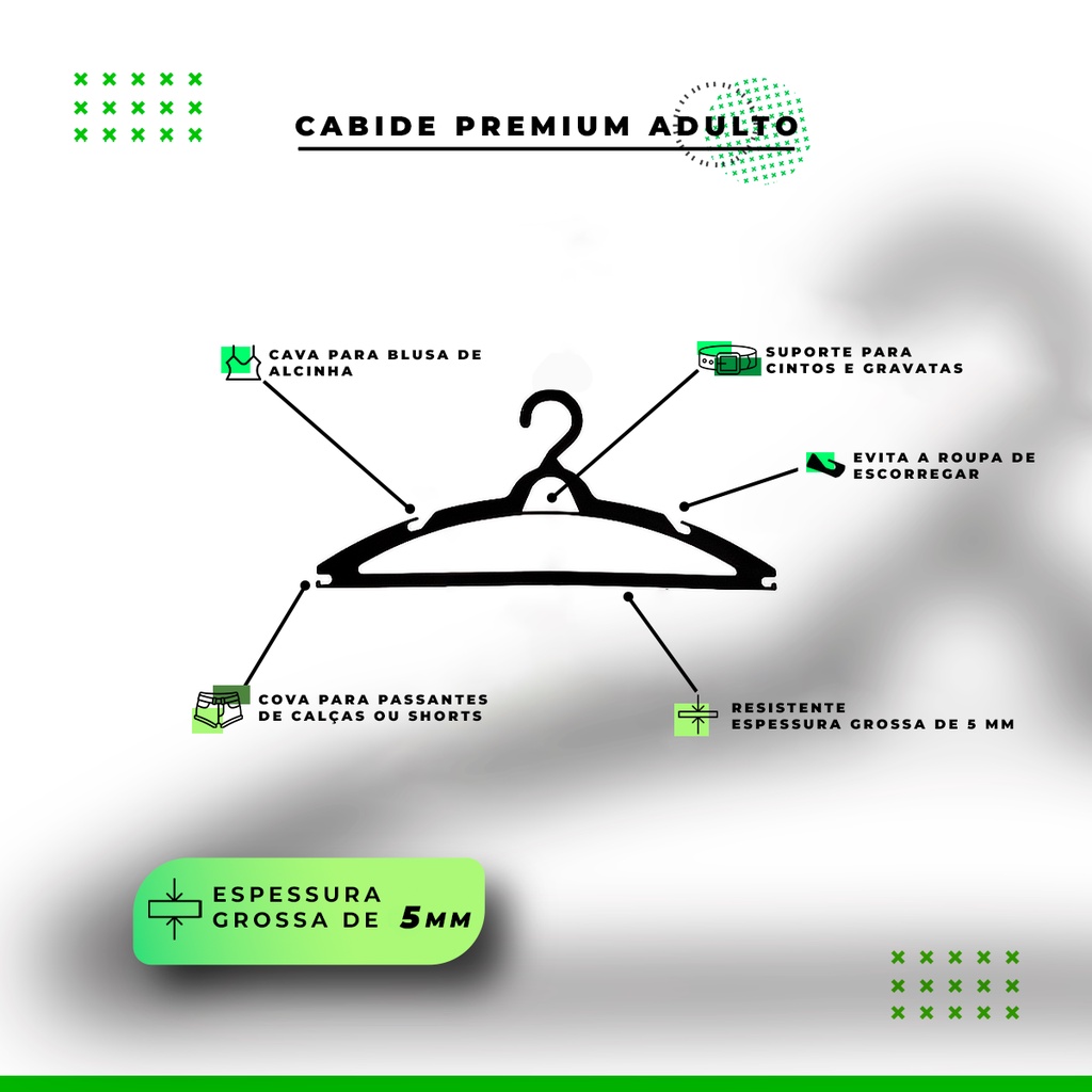 Kit 30 Cabide Adulto Reforçado Preto Plástico Cruzeta Roupas Resistente Premium