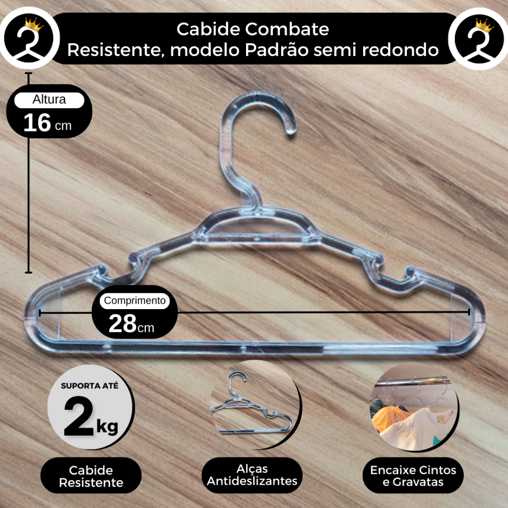 ENVIO EM MENOS DE 24 HORAS - PRODUTO 100% NACIONAL O Cabide Infantil Transparente Cristal de Roupas, é um produto delicado que não pode faltar no guarda-roupa dos pequenos. Seu modelo é Infantil Transparente Cristal, resistente e assegura que as roupas fiquem melhor fixadas nele, para não caírem. Informações: - Medidas: 16 x 28 cm x 5 mm (Altura x Comprimento x Espessura) - Material: Polímero Acrílico Durável e Resistente - Cor: Transparente - Ideal Para: Blusinhas, camisetinhas, macacão, calças, blusas de frio, jardineira, vestidinhos entre outros. Temos uma equipe especializada para atender todas as suas dúvidas e experiência na sua compra pela internet. Garantindo assim, a satisfação de nossos clientes. Obrigado por estar aqui e se tornar nosso cliente! VEJA TODOS OS NOSSOS PRODUTOS EM NOSSA LOJA