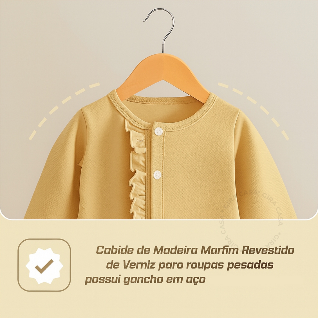 Kit 30 Cabide Madeira Marfim Barato Premium Organização Roupas Calças Loja Atacado