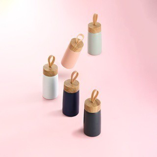 Kit 30 Mini Garrafas Inox 250 ml personalizadas alça design bambu pequena garrafinha