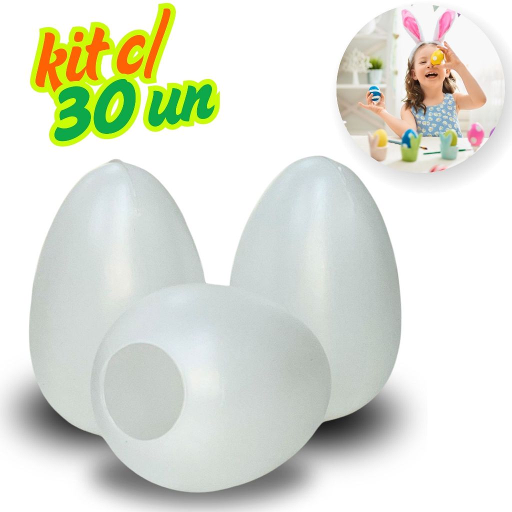 Kit 30 Ovinhos de Páscoa p/ Pintar branco, Casquinha de Ovo de Páscoa em plástico