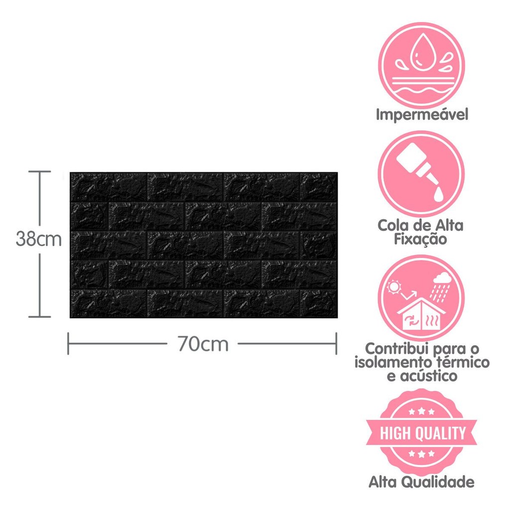 Anúncio referente a 30 placas adesivas CASA NOVA SEM REFORMA! Quer renovar seus ambientes de maneira simples e eficiente? Nossa Placa Adesiva é a escolha perfeita para quem busca praticidade e estilo na decoração. Imagine transformar seus espaços sem a necessidade de obras complicadas ou contratação de profissionais. Com nossas placas generosas de 70x38cm, você pode fazer isso facilmente. Além de trazerem beleza ao ambiente, essas placas são especialmente projetadas para uma aplicação simples e rápida, graças à sua composição em espuma de polietileno. Seja na sala, quarto, cozinha ou escritório, você pode adicionar um toque de sofisticação sem esforço. Nossa placa é a escolha ideal para quem busca personalização sem dificuldades. Basta escolher a área que deseja renovar e aplicar as placas autoadesivas de qualidade excepcional. Transforme seu espaço em algo único e moderno, elevando o estilo da sua decoração de forma prática e sem complicações. Sem gastar muito dinheiro comprando tinta você pode mudar totalmente a cara do local que você quiser com apenas algumas placas de nosso papel de parede! BENEFÍCIOS - Faça Você Mesmo! - Aplicação fácil, rápida e sem sujeira - Lavável - Alta qualidade, com junções perfeitas. - Esconde imperfeições como mofo e rachaduras. - Sem odores durante e após a instalação. - Cola de alta fixação. - Possibilidade de recortes para encaixe de tomadas, lustres, interruptores e caixas de luz. - Seguro para crianças. - Contribui para o isolamento acústico do ambiente. - Contribui para o isolamento térmico do ambiente. - Impermeável. Tamanho de cada Placa: 70cm x 38cm Área de cobertura de cada placa: 0,26m² São necessárias 4 placas para render 1 metro quadrado Dados técnicos do produto Material: Espuma de Polietileno Cor: Preto Espessura: 2 mm Indicado para: Ambientes internos / Ambientes externos (Cobertos) COMO INSTALAR: 1. Limpe bem a superfície onde será instalado. 2. Prepare uma solução com água e detergente neutro. 3. Remova o papel de proteção e borrife a solução no adesivo, espalhando sobre a superfície para facilitar o ajuste da placa. COMO CORTAR: Precisa ajustar o tamanho das placas para se adequarem ao seu projeto? Não se preocupe! Nossa placa adesiva pode ser facilmente cortada com uma tesoura ou estilete, permitindo que você personalize cada detalhe conforme necessário. PERGUNTAS FREQUENTES Como calcular a quantidade de placas necessárias? Informe as medidas da parede para calcular a quantidade necessária. A instalação requer profissionais? Não é necessário, a instalação é simples e pode ser feita pelo próprio usuário. As placas podem ser limpas? Sim, utilize um pano com detergente neutro para limpeza.