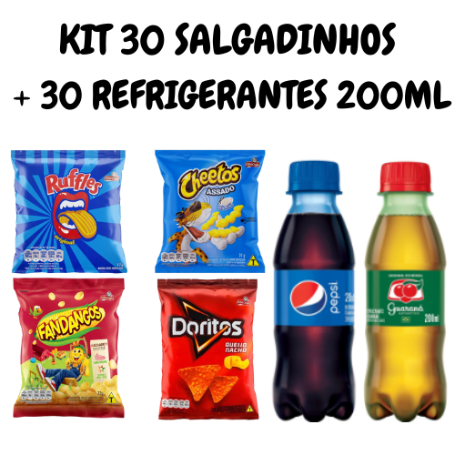 KIT 30 SALGADINHOS ELMA CHIPS + 30 REFRIGERANTES 200ml