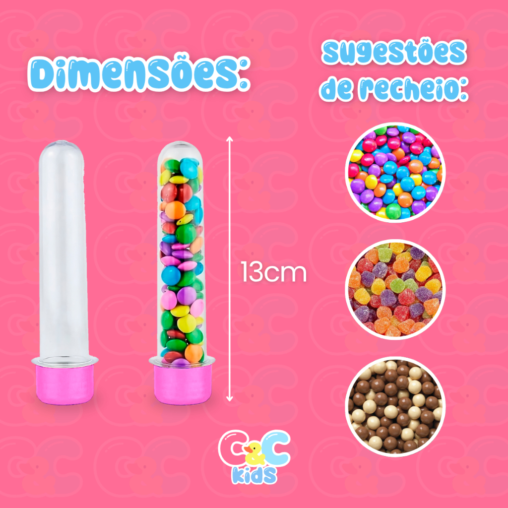 TAMANHO: Altura : 13cm Circunferência: 2,4cm Capacidade: 35ml DETALHES DO PRODUTO - Excelente qualidade e acabamento - Tubete acrílico c/ tampa plástica - Diversas opções de cores Os tubetes são uma opção versátil para lembrancinhas e decoração. Você pode enche-los com jujubas, balinhas, confetes. Aproveite também para decorá-los de acordo com o tema escolhido. **POSTAGEM/ENVIO:**Todos os nossos produtos estão disponíveis para pronta entrega, e realizamos o envio dentro do prazo de 24 a 48 horas úteis após a confirmação do pagamento. **DÚVIDAS:**Estamos à disposição para esclarecer qualquer dúvida. Basta enviar uma pergunta através do chat, e retornaremos o mais breve possível.